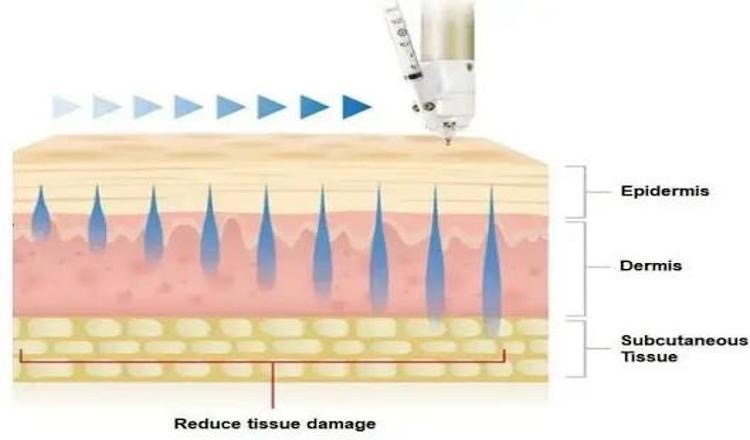 高圧ジェットによって、有効成分を真皮層まで届けることができます。