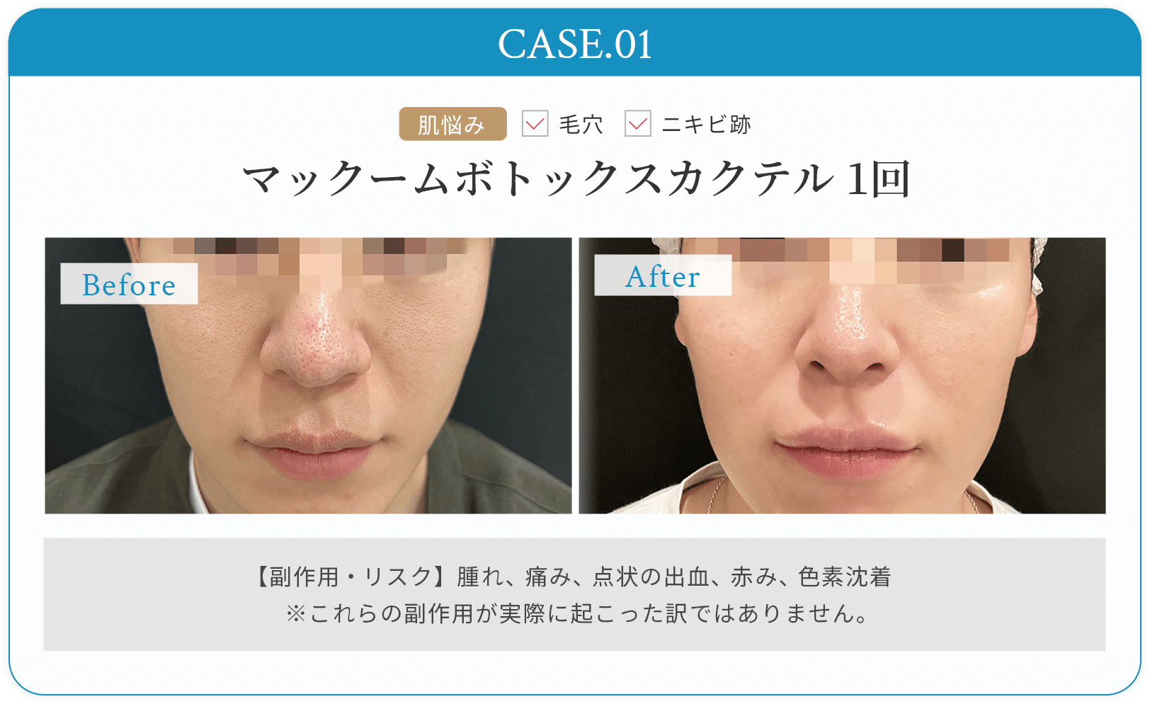 マックームとエクソソームをカクテルした当院オリジナルの薬剤です。あなたの肌のお悩み・状態に合わせて、医師が最適調合いたします。