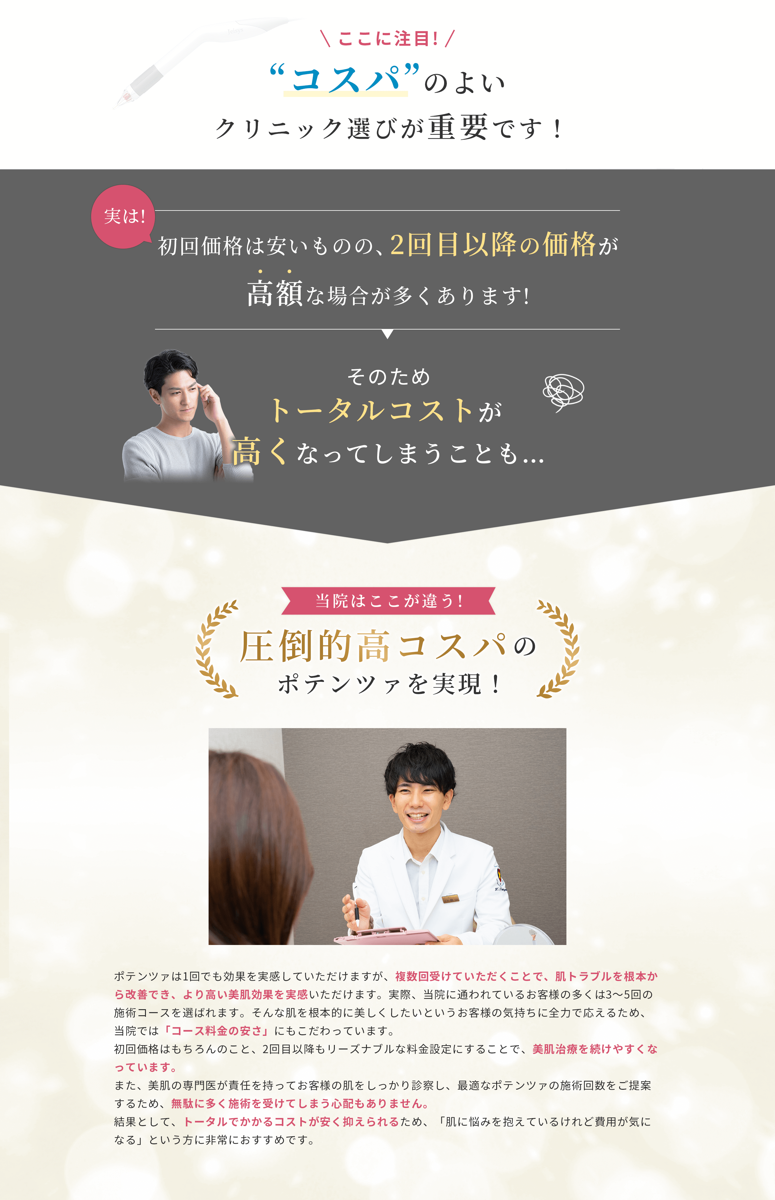 ポテンツァは一回目から効果を実感できる治療ですが、複数回施術を受けることでより高い治療効果が期待できます。