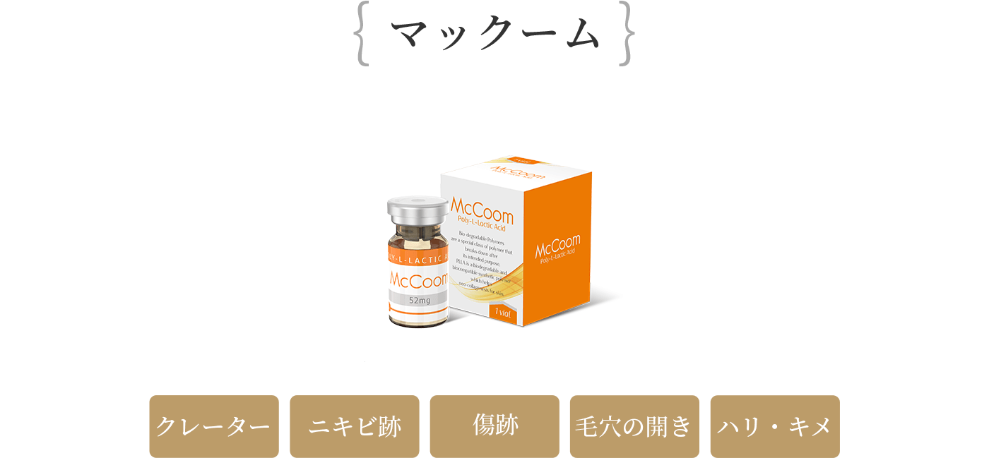 PDLLAは、手術用縫合糸としても使用されている成分で、注入後は1〜2年かけてゆっくりと体内に吸収されていくため、効果の持続力が長いことも特徴です。そのため、マックームよりも美肌効果が高いとされています。