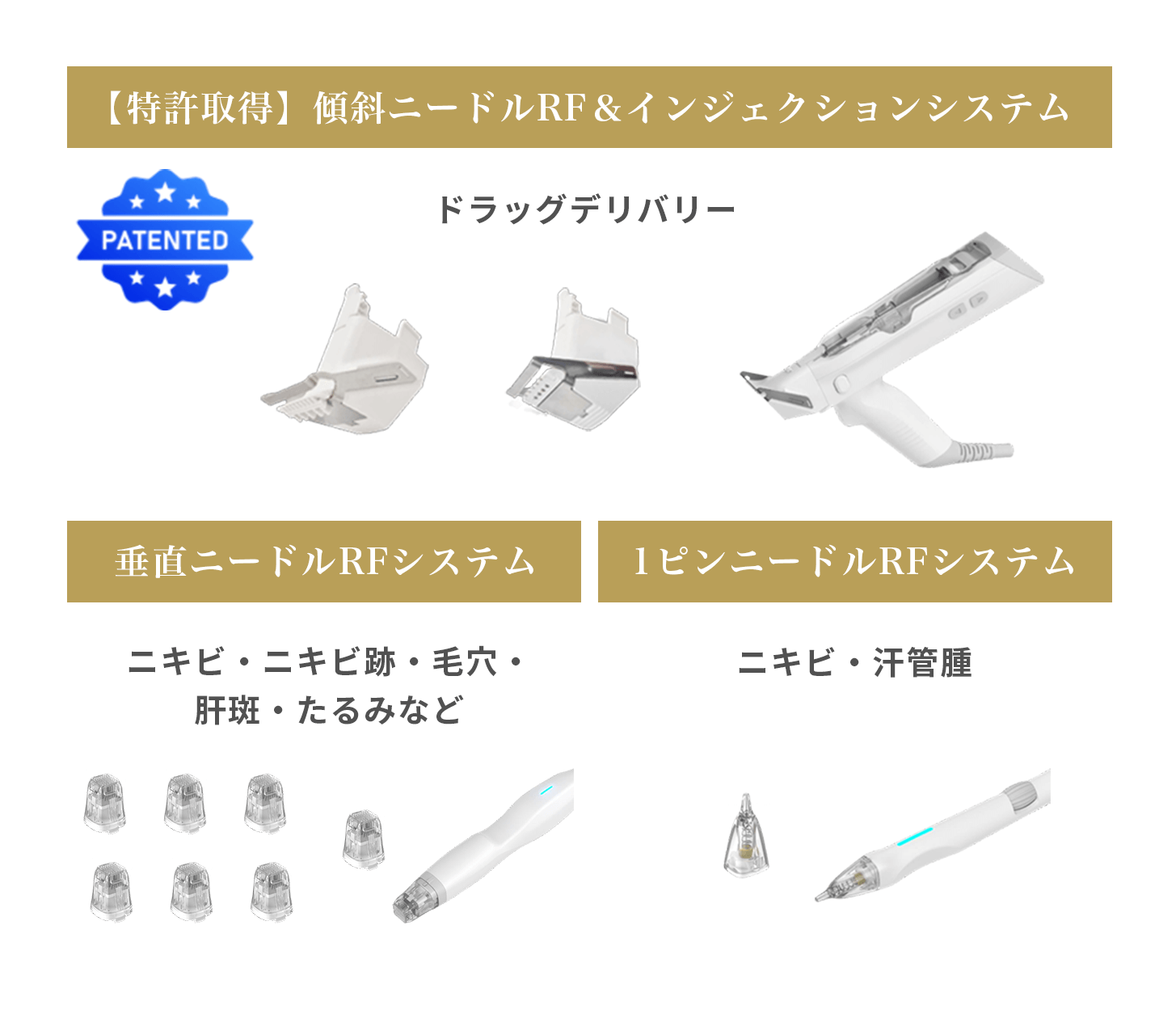 世界初の「傾斜ニードルRF&インジェクションシステム」を搭載。