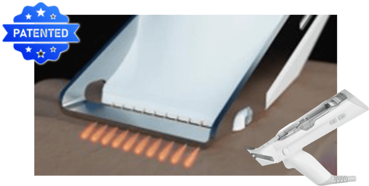 この技術により、「RFエネルギーの広範囲照射」「薬剤ロスほぼゼロの高効率かつ安定した薬剤注入」「強力なサブシジョン効果」が実現されており、従来治療では不可能だった「肌組織そのものを再構築させる」という超次元の効果が得られます。